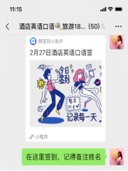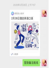 学生在学习过程中对课件内容进行反馈,教师在每日课程中也会对学生的作业进行反馈,对认真完成作业进行群内展示,以供同学们学习,也会对学生的对话练习语音进行发音的纠正,同时不断在课程中跟进学习进度较慢的学生。