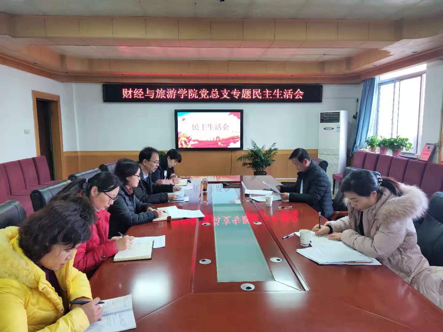 12月16日下午,财经与旅游学院党总支召开“不忘初心、牢记使命”专题民主生活会。财经与旅游学院党总支书记孙继龙、院长吴姗娜、副院长赵利娟参会,其他总支委员列席了会议,学院党委副书记贺天柱同志全程参加了会议。会议由财经学院党总支书记孙继龙主持。