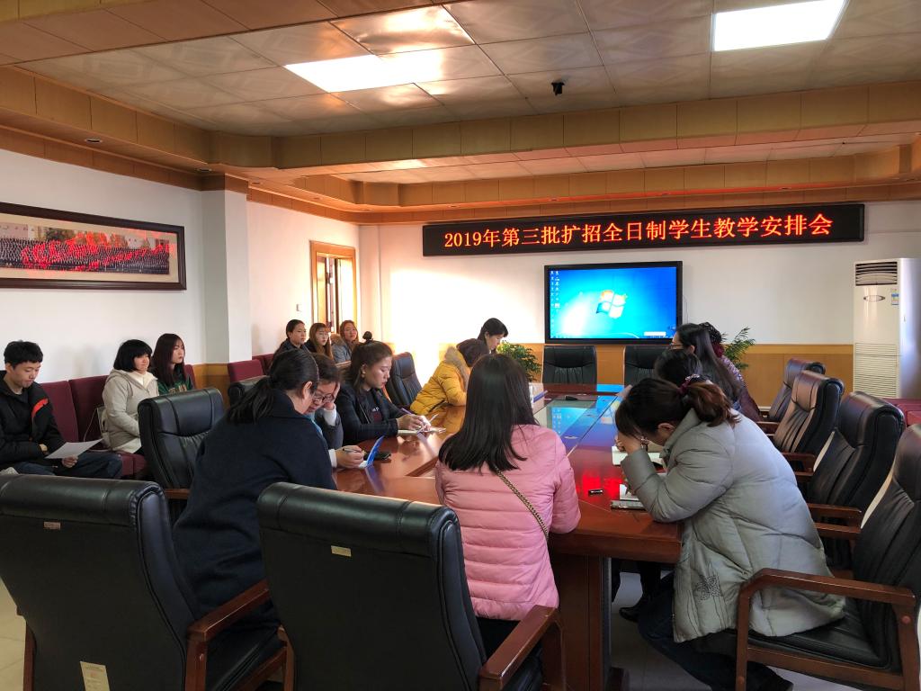 12月9日下午,财经与旅游学院在格物楼408召开2019年第三批扩招全日制新生教学安排工作会议,8名新生和教学管理人员、有关任课教师参加此次会议,会议由财经与旅游学院赵利娟副院长主持。
