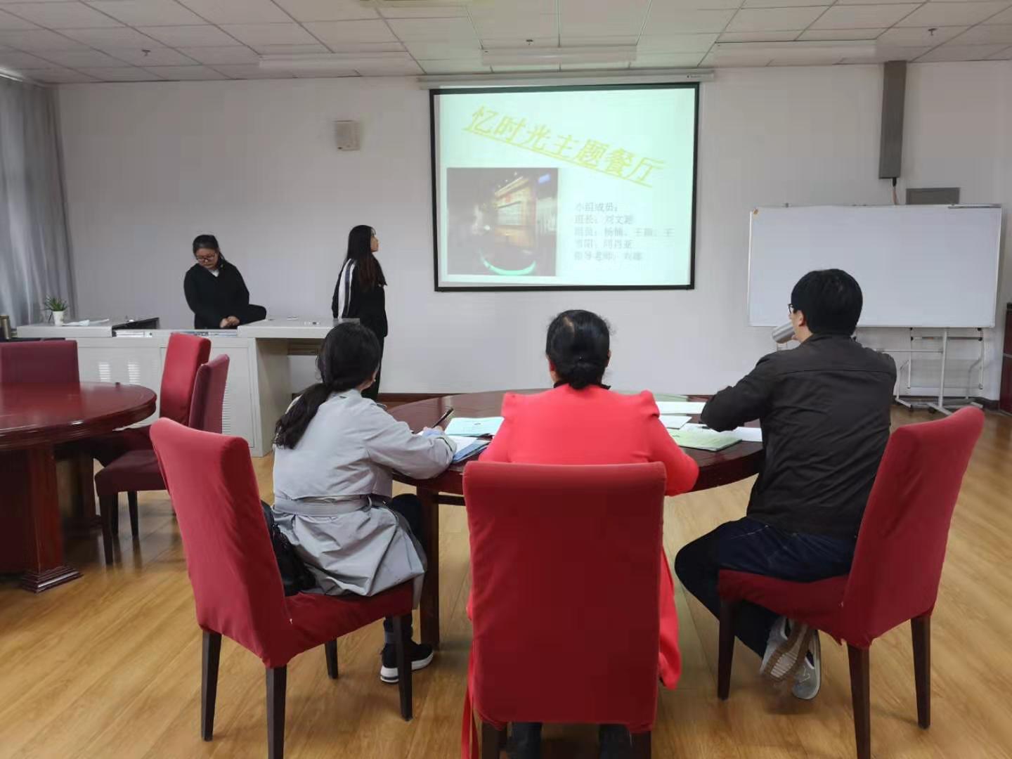 答辩本着严肃、认真、公正、严格的原则。答辩前由各答辩组组长讲述答辩流程、要求及答辩中应注意的事项。现场答辩过程中,参加创新、创意、创业项目策划组的同学通过PPT,从项目的背景、项目内容、项目分析、项目特点等方面向老师们进行项目展示;参加技能大赛的学生,从参赛准备、参赛过程、赛后体会等方面向老师们进行总结。答辩组教师根据学生阐述,提出问题由其做答,并根据回答,指出不足提出修改意见。本次答辩在严肃紧张、有条不紊的氛围中圆满结束。