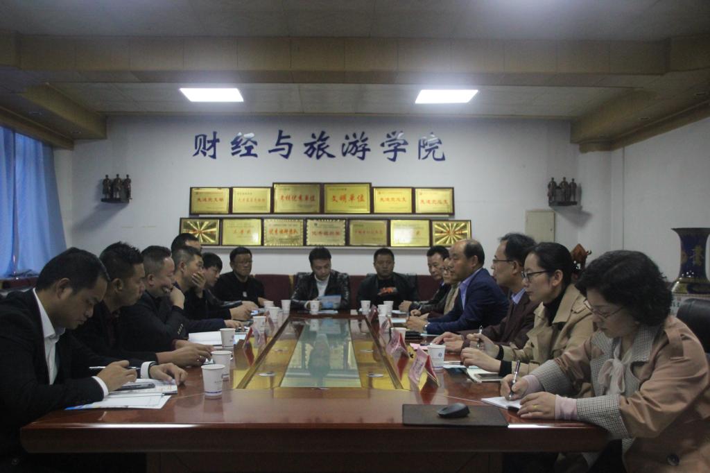 2019年10月10日下午,我院与紫阳青创协会在格物楼408财经与旅游学院会议室举行了校企座谈会。紫阳县统战部副部长、工商联党组书记吴时林、紫阳县青创协会会长王向平、我院副院长梅创社、财经与旅游学院全体干部及教师代表参加了本次座谈会,会议由财经与旅游学院党总支书记孙继龙主持。