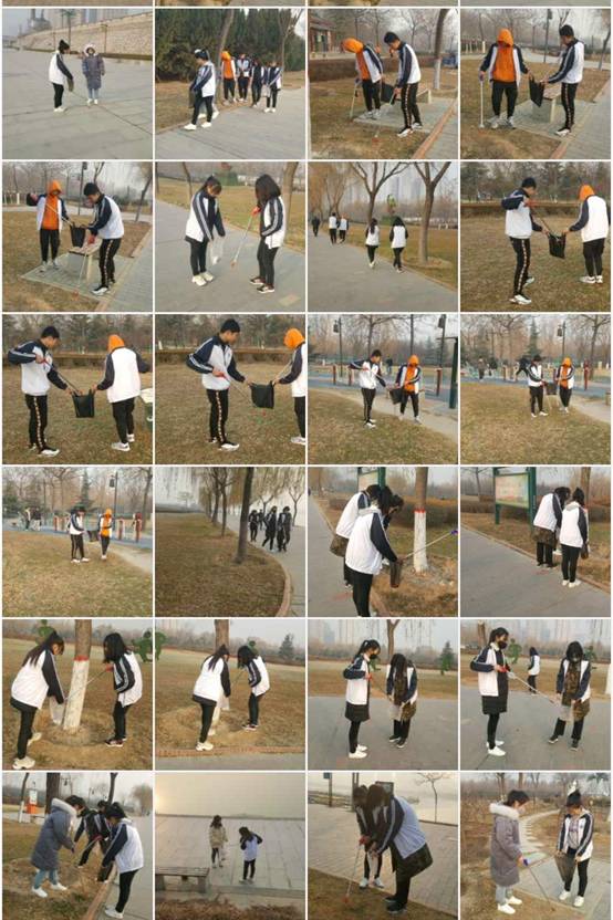 在完成图书馆劳作教育后,在学院领导的大力支持下,购买了垃圾钳、垃圾袋等环保工具,12月20日,工商1801、02班全体学生在指导老师的精心带领和指导下,来到咸阳湖畔的渭滨公园,展开了公益环保捡垃圾活动。此次环保活动受到了当地老百姓的关注和好评,同时也展现了我院学生“爱护环境,从我做起”的环保意识和理念。