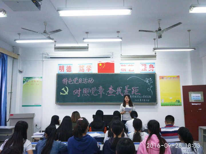 9月28日下午4:30到6:00,工商管理学院学生工作支部,按照学院“两学一做”活动要求,在工商学院学工办办公室和崇文南楼c210教室,分别对教师党员和学生党员开展了“对照党章,查找差距”的特色党日活动,活动以座谈会的形式开展,学工支部全体教师党员及学生党员参会。党支部书记杜娟主持本次会议。