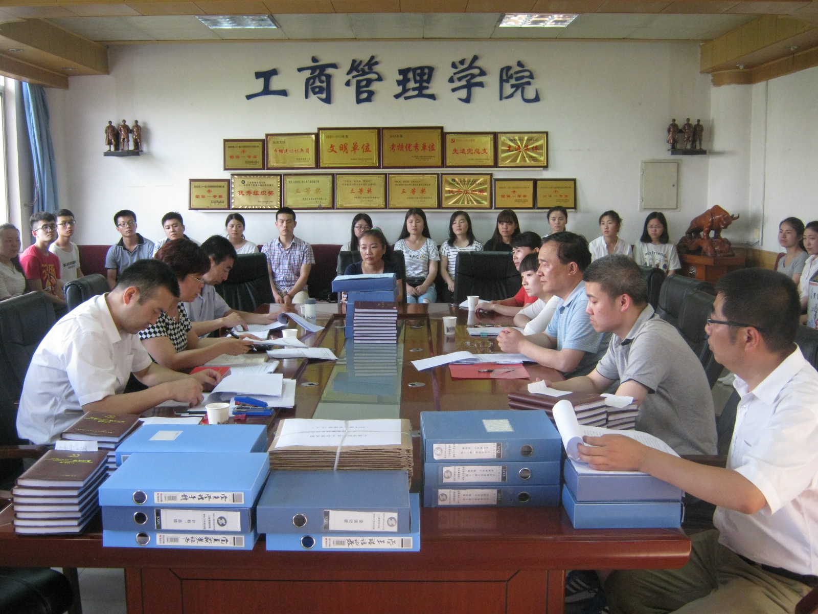 学院基层党支部量化考核工作第二考核组于6月13日下午5时许,在学院格物楼408会议室,对工商管理学院学生工作党支部2015-2016学年工作做全面考评。第二考核组由院工会主席刘文青、纺化服学院副书记程建卫、院组织部干部科科长侯涛三人组成,学生工作党支部七名正式党员组成汇报小组,四十余名学生党员列席考核会,侯建朝老师主持考核会并为主汇报人。