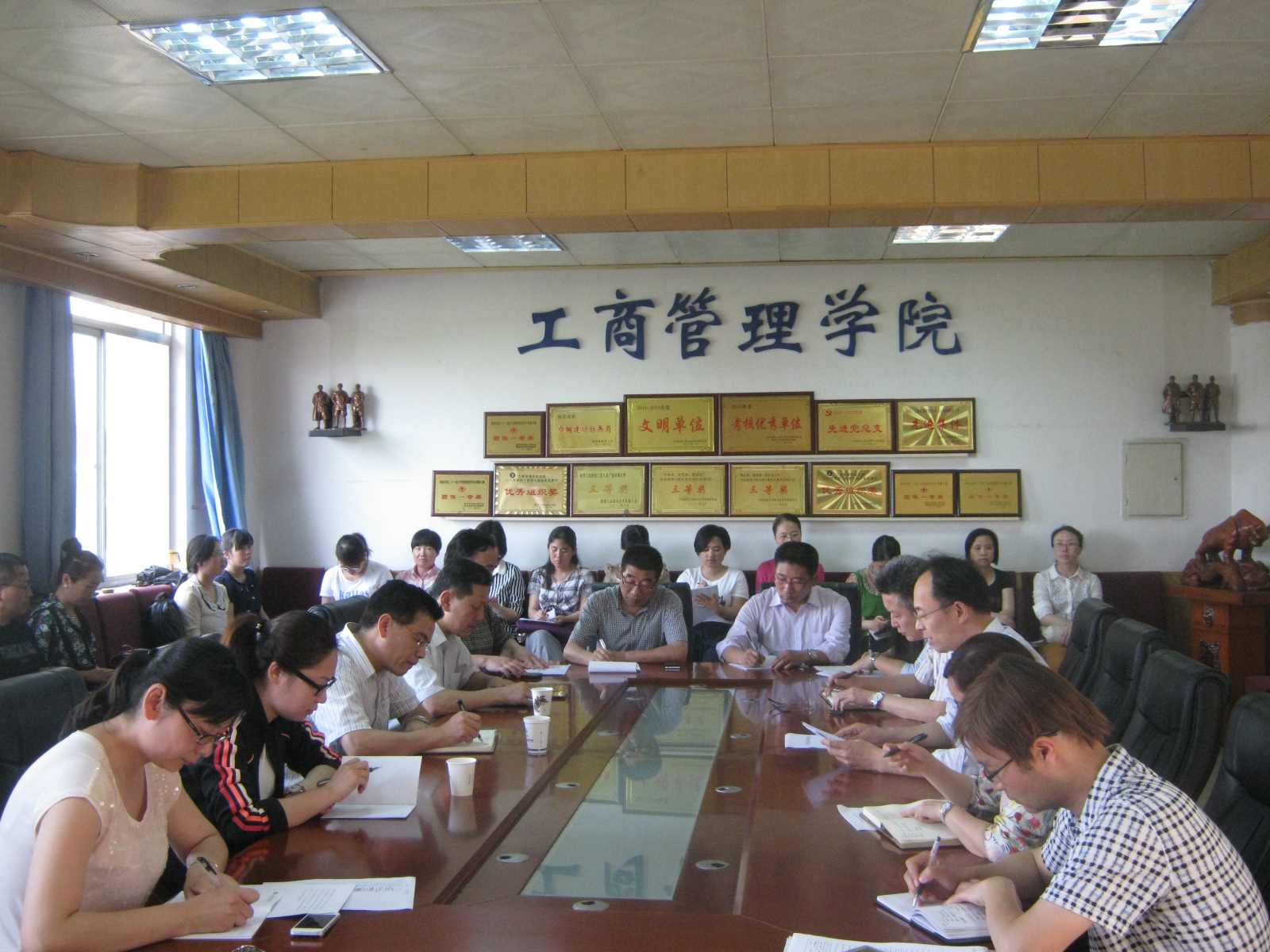 最后,刘永亮副书记做了总结讲话。他对工商管理学院“两学一做”学习教育的部署安排和工商管理学院在教育教学、学生管理方面一些好的经验做法给予了充分肯定,对各位老师集思广益,关心学院发展表示了感谢。对大家发言中谈到的意见和建议,学院将会高度重视,不断改进完善。而后着重强调“两学一做”学习教育重点在学,关键在做,最终要达到推动各项工作发展的目的。提出了在学习活动中人是主体,学要落到实处,做要结合岗位本职;在教学管理活动中,要有担当精神,要达到做人干净,做事干净的要求。希望大家以“两学一做”学习教育为契机,加强学习,提高修养,积极面对工作,发扬党员的先锋模范精神,大力推动学院各项工作再上一层楼。