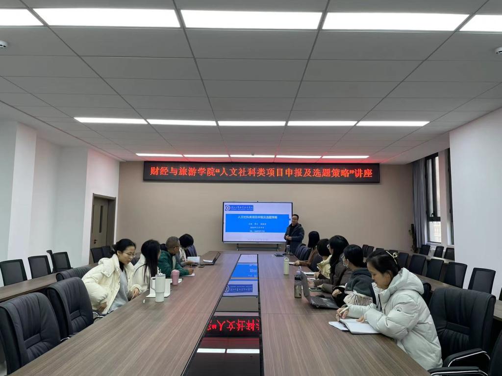 为帮助教师更好地理解和掌握人文社科类项目申报的重难点,提升学院项目立项数量与质量。2024年12月19日,财经与旅游学院在在崇理楼D504举办了“人文社科类项目申报及选题策略”专题讲座,主讲人为我院石斌博士,财经与旅游学院博士等青年教师参会,财经与旅游学院教学办主任仝丹娜主持。