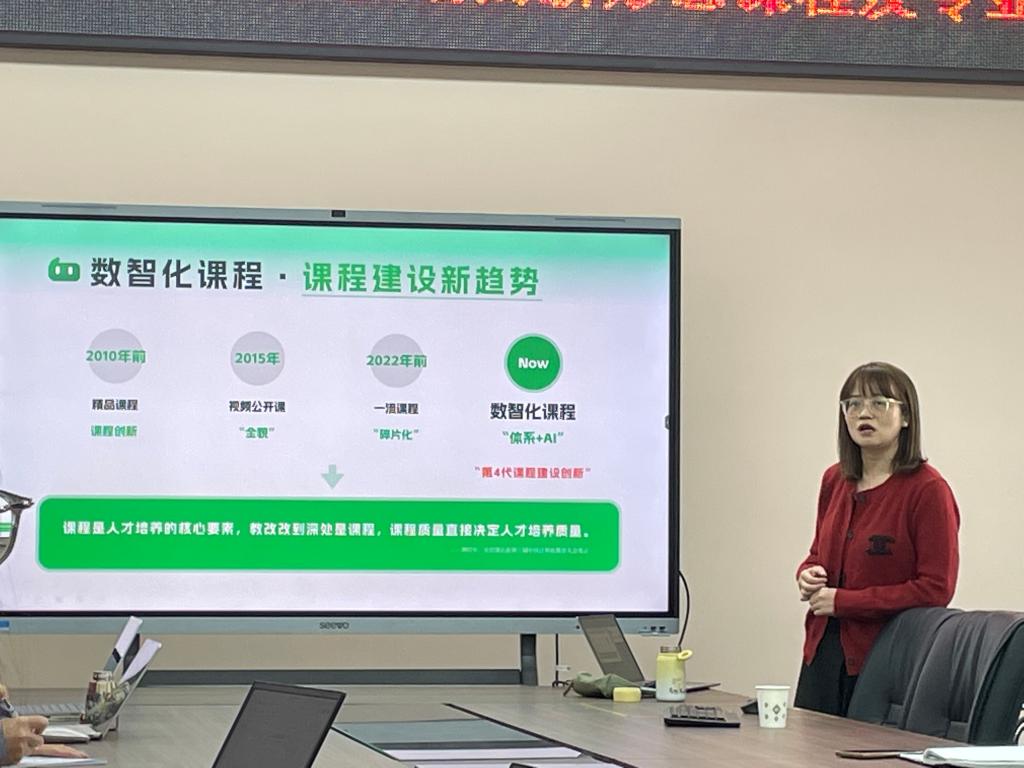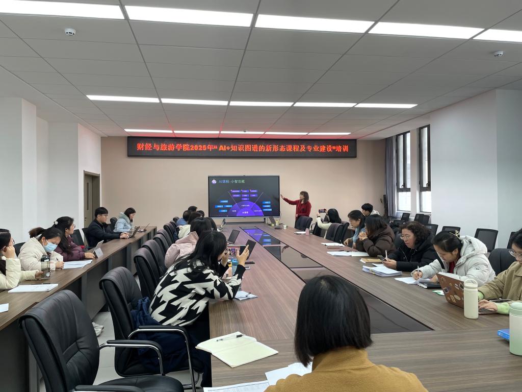 为提升课程与专业建设质量,财经与旅游学院1月13日下午在崇理楼D504举办了一场以“AI+知识图谱的新形态课程及专业建设”为主题的培训。本次培训邀请智慧树平台课程建设的张雪敏老师主讲,学院校级金课、在线精品课程负责人及团队成员参加。财经与旅游学院教学办主任仝丹娜主持。