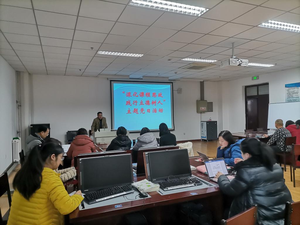 12月9日下午,财经与旅游学院教师第二党支部组织全体教师党员开展了“深化课程思政,践行立德树人”主题党日活动,特别邀请了非党员教师一并参加,活动由教师第二党支部书记田建平主持。