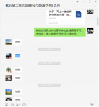 直播课前期,接到院党委宣传部通知,财经与旅游学院教师第二党支部支部书记田建平同志第一时间组织教师支部全体党员进行学习,要求按时参加直播课程学习,课后分享学习心得体会。党员同志们纷纷积极响应,认真进行了学习,结合自身感悟进行了学习总结。