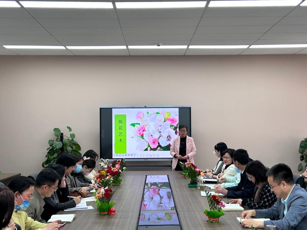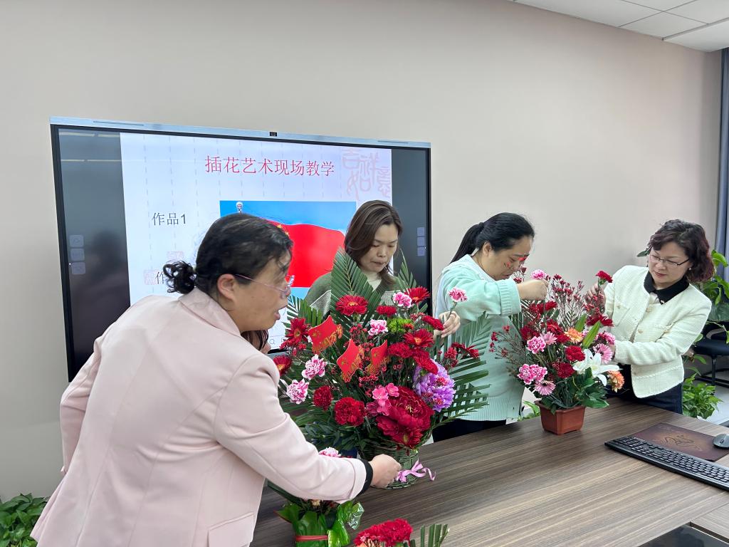 活动中,学院党总支副书记程建卫向学院全体女教师致以节日的问候和美好的祝愿,勉励全院教师以更加饱满的热情,更加昂扬的斗志,精诚团结、踔厉奋发、勇毅前行推动学院的进一步发展。随后学院领导为在2022年度获得国家级及省级奖项的优秀教师代表献上鲜花进行表彰,并邀请了旅游管理专业教师张敏娜老师为大家讲解中国传统花文化和插花艺术,大家在张老师的精心讲解和指导下,充分发挥自身的创造力和想象力,认真挑选,精心构思,经过一个多小时的亲手实践,一件件高低错落、疏密有致,饱含对党的感恩之情的插花作品在女教师手中诞生,每一件都独一无二,每一件都绚烂多姿,每一件都承载着对党、对国家、对学校的美好祝愿。热情的笑脸与盛开的鲜花交相辉映,整个活动现场洋溢着热烈欢快、积极向上的气氛。