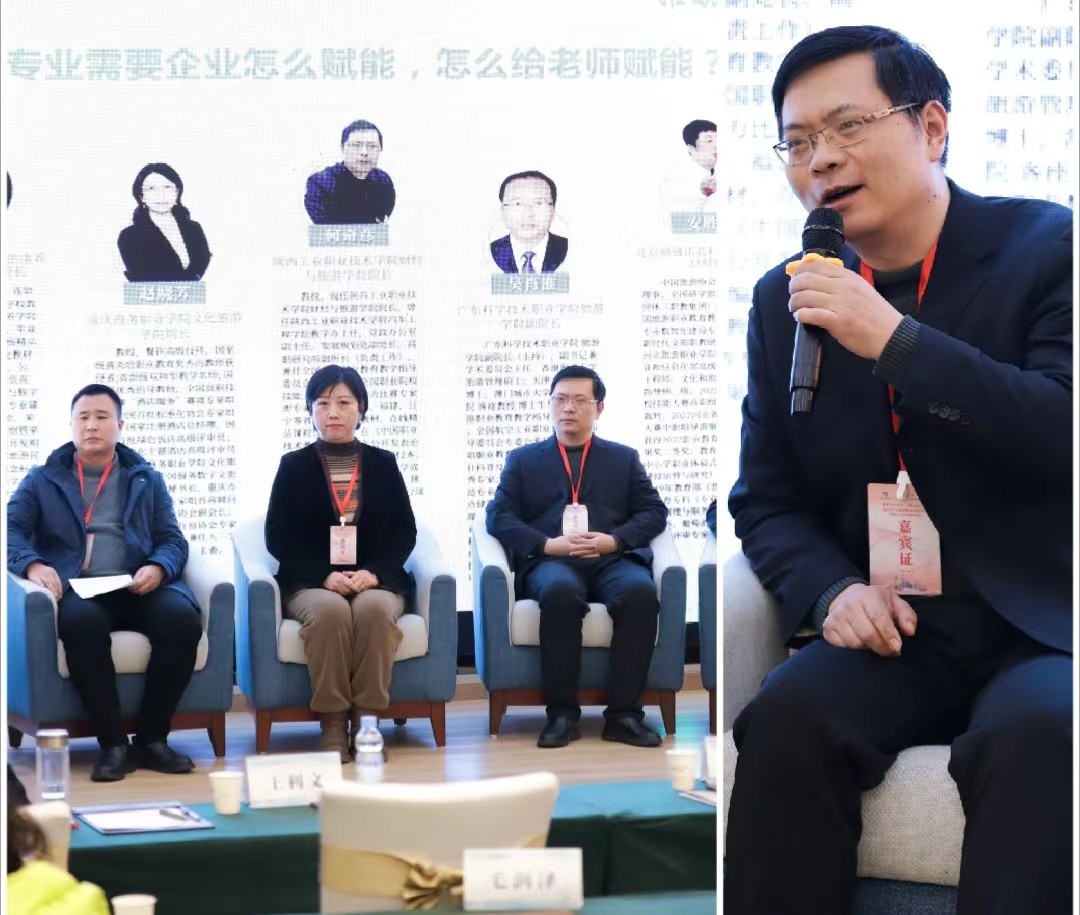 接产业发展,打造新时代旅游金师队伍”的交流。结合教育部副部长吴岩提出的产教融合五大任务,指出旅游产业面临着新业态的挑战和机遇,数字化技术的迅猛发展为旅游行业带来了新的可能性;提出旅游专业如何与企业合作赋能教师的经验和思考,强调教师要随着产业发展,实现“教随产出”和“校企同行”的紧密合作,明确培养“金师”即双师型教师的重要性。与会专家和代表作出的积极回应并表示赞同。