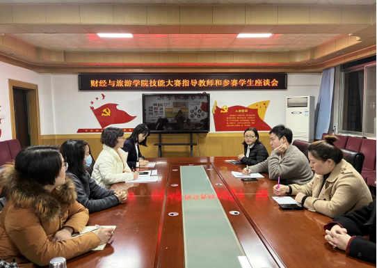 12月15日,财经与旅游学院在格物楼408会议室召开了技能大赛工作座谈会,财经学院院长吴姗娜、实训中心主任张艳、教学办主任仝丹娜及5个赛项13名大赛指导老师、30名备赛学生参加了本次座谈会。