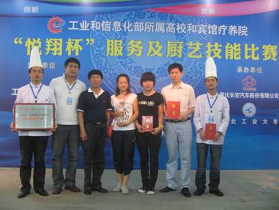 2010年9月18日,工业和信息化部在陕西省西北工业大学隆重举行了“工业和信息化部所属宾馆、疗养院以及各大下属院校的服务技能大赛及厨艺大赛”。参加此次大赛的有哈尔滨工业大学、哈尔滨工程大学、北京航空航天大学、西北工业大学、工信部青岛疗养院、工信部北戴河疗养院、工信部机关服务局等20余支遍布全国的参赛队伍。我院工商管理学院酒店管理专业0901班同学强蓉蓉、项阳代表工信部北戴河疗养院参加了此次大赛,比赛共设厨艺比赛,餐饮服务技能,客房服务技能等几项比赛内容。项阳参加了客房组比赛,强蓉蓉参加了餐饮组比赛,比赛中她们以高昂的斗志、不服输的精神、熟练的操作技能,为工信部北戴河疗养院赢得了团体银奖。两位同学的优秀表现也获得了在场工信部领导的一致好评。