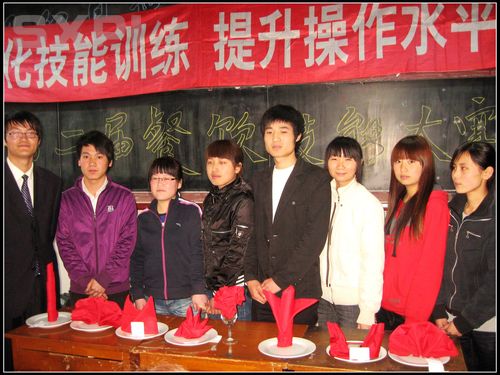 2010年4月12日,我院“第二届酒店餐饮技能大赛”决赛在西校区顺利举行。本次技能大赛分为初赛和决赛两个阶段。经过初赛角逐,25位选手脱颖而出,获得继续在决赛中展示自我的机会。担任此次大赛决赛评委老师有:工商管理学院院长杨卫军老师、工商管理学院书记韩文飞老师、旅游教研室主任何奇彦老师、旅游教研室郭利娟、张敏娜以及学工办吕华、柴继红等老师。决赛一共分为三个环节:第一轮为酒店餐饮知识竞答,第二轮为餐巾折花,第三轮为斟酒技能表演。经过激烈角逐,酒店0802班的段媚同学荣获一等奖;酒店0802班杨少平、郑晨同学获得二等奖;酒店0901班韩士鹏、苏咪、王震、李云娟和酒店0802班李婉婉同学获得三等奖。参赛选手表示,通过技能大赛,不但切磋了技艺,交流了学习经验,还显著的提高了心理承受能力和表达能力,特别是老师们对手持托盘和倒酒等具体姿势的指导,使比赛更加贴近实际工作要求,进一步提高了同学们操作技能的标准程度。