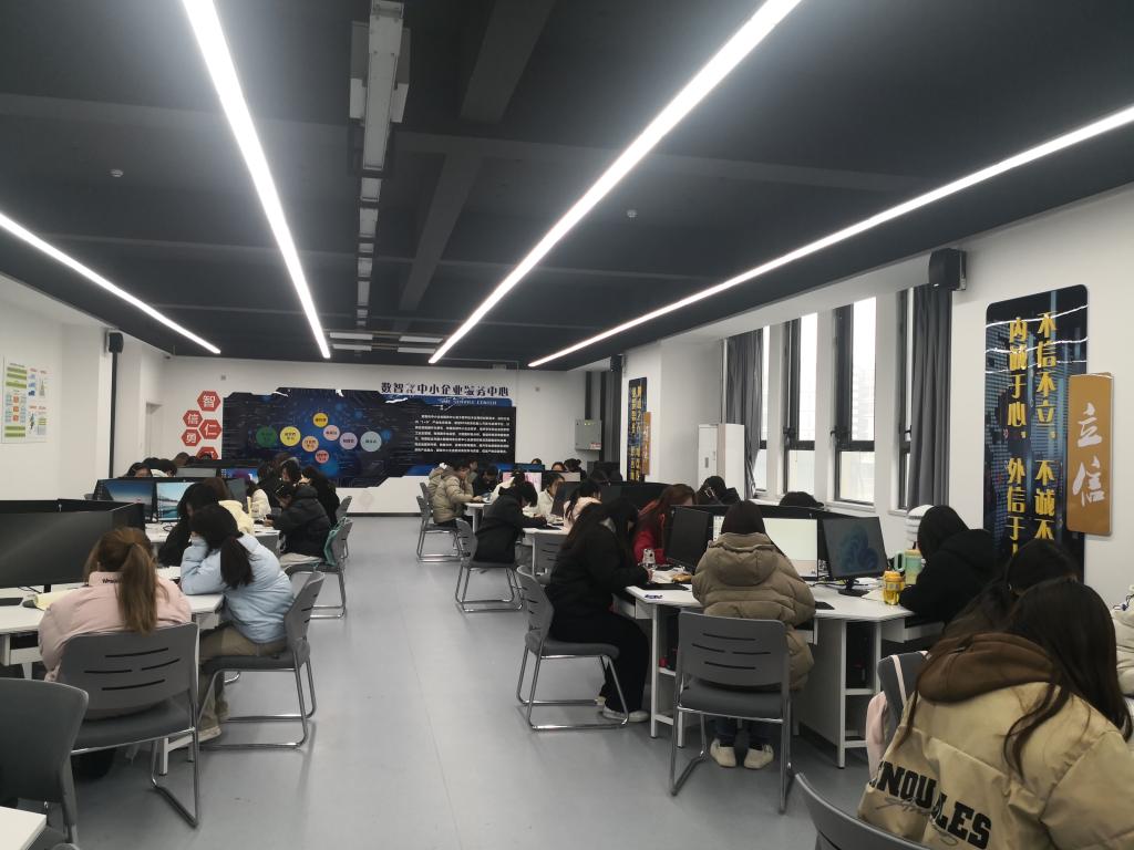数智化中小企业服务中心建成于2023年2月,使用面积188平方米,仪器设备及软件资产总额70余万元,学生实训工位数58个,主要仪器设备及软件有多媒体教学设备1套、学生机58台。