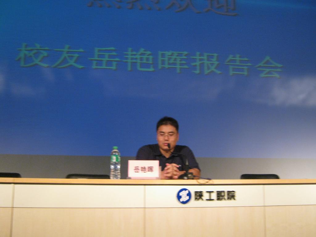 首先,岳艳晖校友介绍了自己的成长经历及创业历程,并就当今社会高职生应该树立怎样的就业观念和价值取向提出了自己的建议和观点。