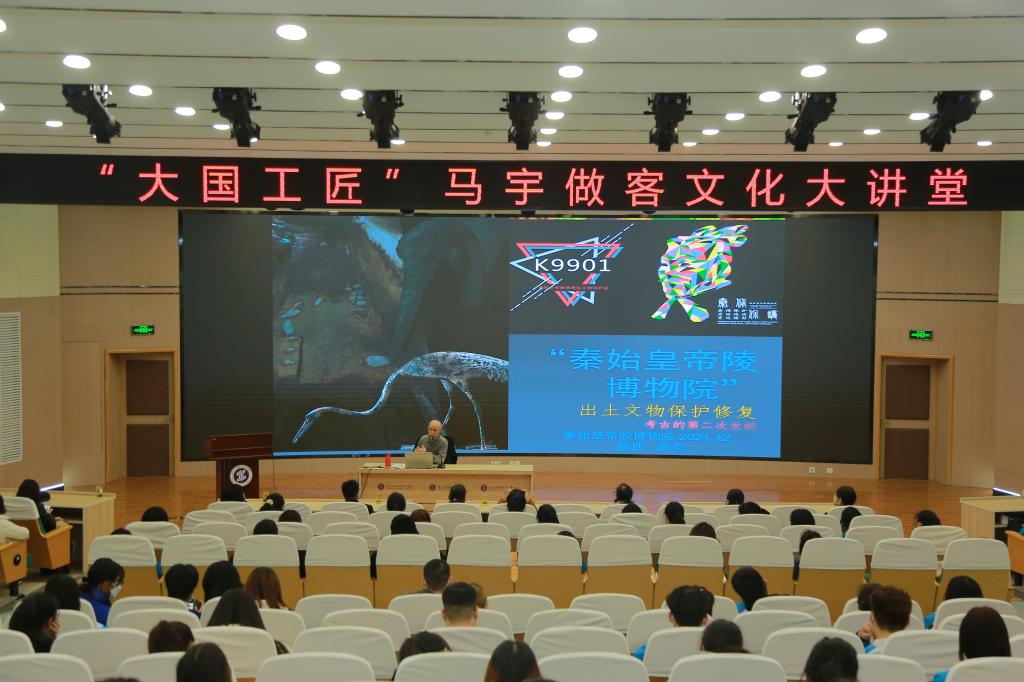 12月2日下午,财经学院特邀秦始皇陵博物院文物保护修复师、副研究馆员、大国工匠马宇老师做客文化大讲堂,在学术会堂作了题为《“秦始皇帝陵博物院”出土文物保护修复》的专题报告,学院党总支书记孙继龙、学工办主任杜娟、实训中心主任张艳、旅游教研室主任郭丽娟、就业专干及酒店、旅游专业大一、大二全体学生共计200余人,共同聆听了此次报告。