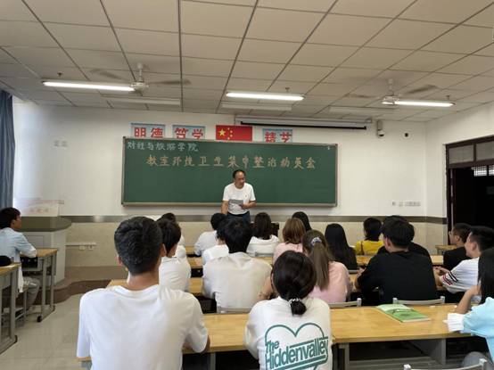 为保障教室环境整洁美观,进一步营造良好的育人环境,落实我校“三全”育人教育理念,强化劳动教育,提高学生文明素质,落实我校“文明教室”班级包干制度,创建“文明教室”长效机制。营造干净、整洁、文明、温馨的教室环境,培养学生良好的劳动习惯,财经与旅游学院9月17日下午18点,在崇明楼806召开了教室卫生集中整治动员大会。