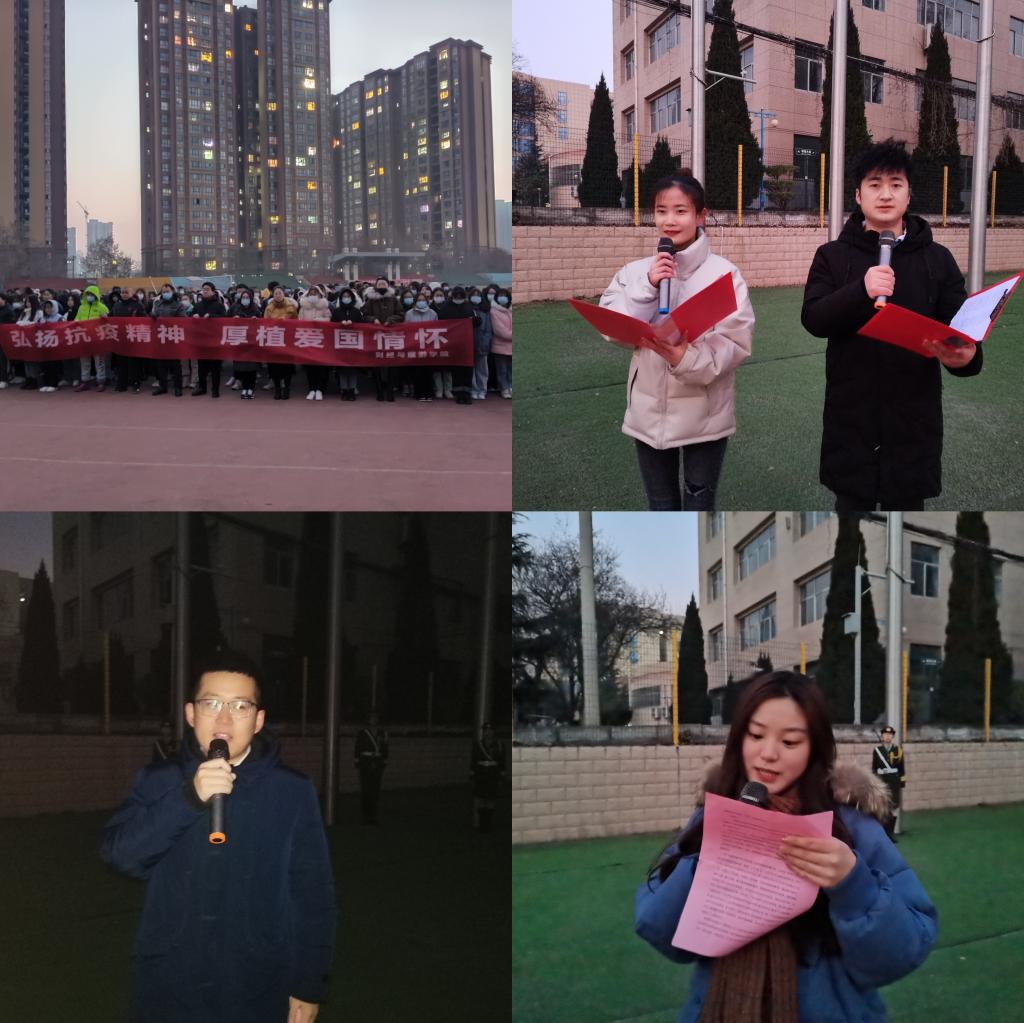 12月21日清晨,财经学院组织开展了“国旗下的成长”主题教育活动,此次活动的主题是“弘扬抗疫精神,厚植爱国精神”。财经学院党总支书记孙继龙、院团委书记赵双军、学工办主任杜娟、学工办全体辅导员、2020级全体班主任以及2020级全体学生参加了此次活动。