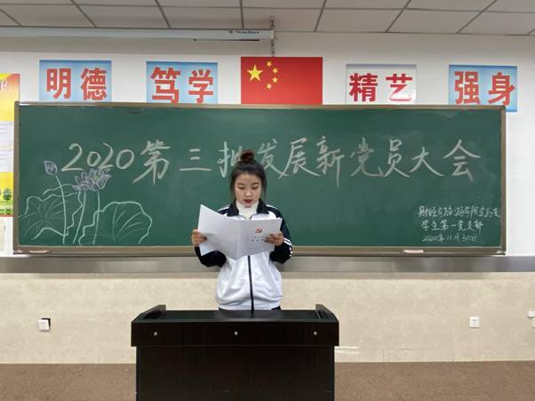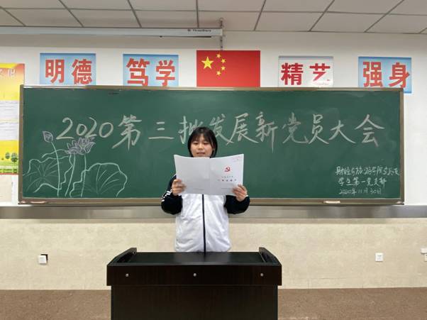 财经与旅游学院党总支学生第一党支部于2020年11月30日下午在崇明楼806教室召开接收预备党员支部大会。此次大会旨在为党组织汇入新鲜血液,增强支部力量,学生第一党支部全体党员、入党培养联系人以及第十一期发展对象参加了本次支部大会。本次会议由支部书记罗峰同志主持。