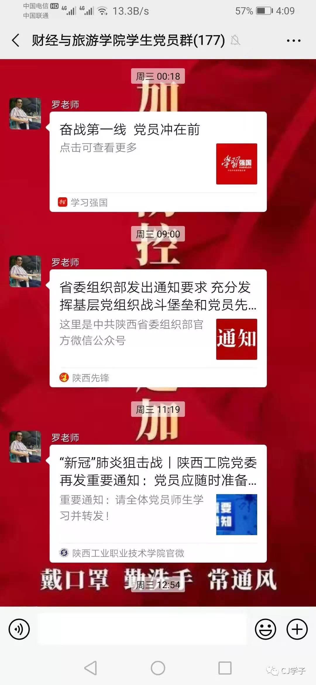 勇士逆行,党员带头,我们财经与旅游学院学生第一党支部的全体党员在学院党委的领导下,时刻准备着听从党的召唤,甘为先锋、扛起责任,把人民群众生命安全和身体健康放在第一位,用自己的行动筑起了一道坚固的生命防线。在让党旗在陕西工业职业技术学院防控疫情斗争的第一线高高飘扬。为坚决打赢疫情防控攻坚战,发挥出一名共产党员的忠诚担当,兑现那一句铿锵响亮的入党誓言。