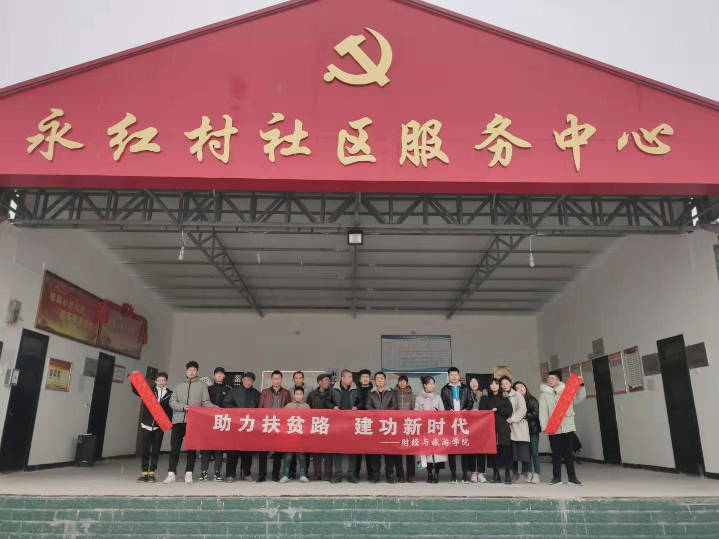 为了进一步贯彻落实党的十九大精神,学习习近平新时代中国特色社会主义思想,积极培育和践行社会主义核心价值观,引导我院学生积极投身社会实践,服务基层群众,1月9日,财经与旅游学院组建学生团队,赴礼泉县永红村开展“助力扶贫路,建功新时代”大学生寒假社会实践活动。