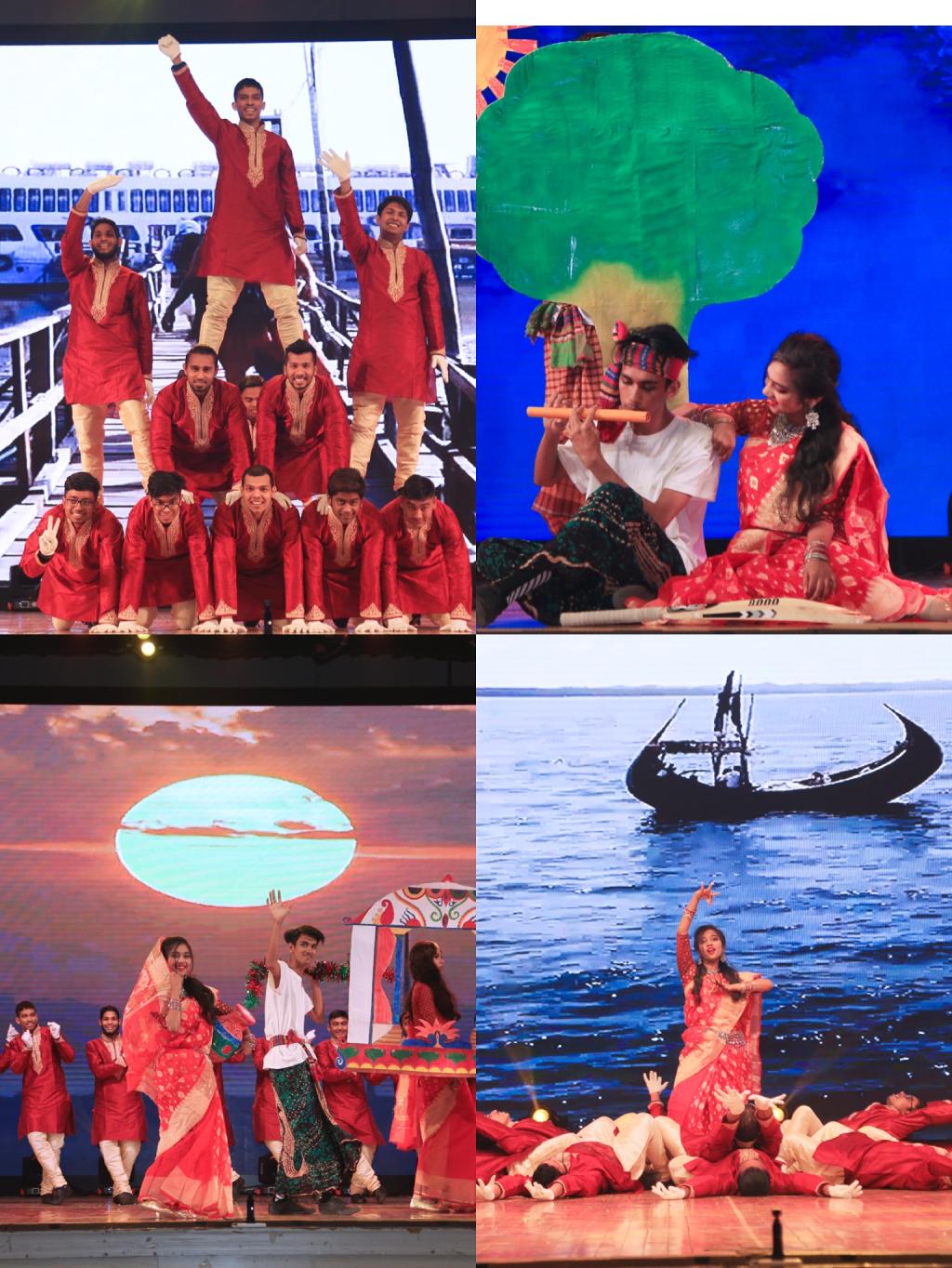 我院孟加拉留学生表演的舞蹈“孟加拉虎”参演。该舞蹈由来自2018级、2019级孟加拉国的16位留学生们共同完成,融入了当地民族文化元素,表达了我校来华留学生们充满活力、朝气蓬勃的特点,使得在场的所有观众眼前一亮。鼓掌、呐喊声此起彼伏,更有观众为男伴女装反串演员的惊艳造型和精湛演技欢呼雀跃,将整个晚会的氛围推向了高潮。