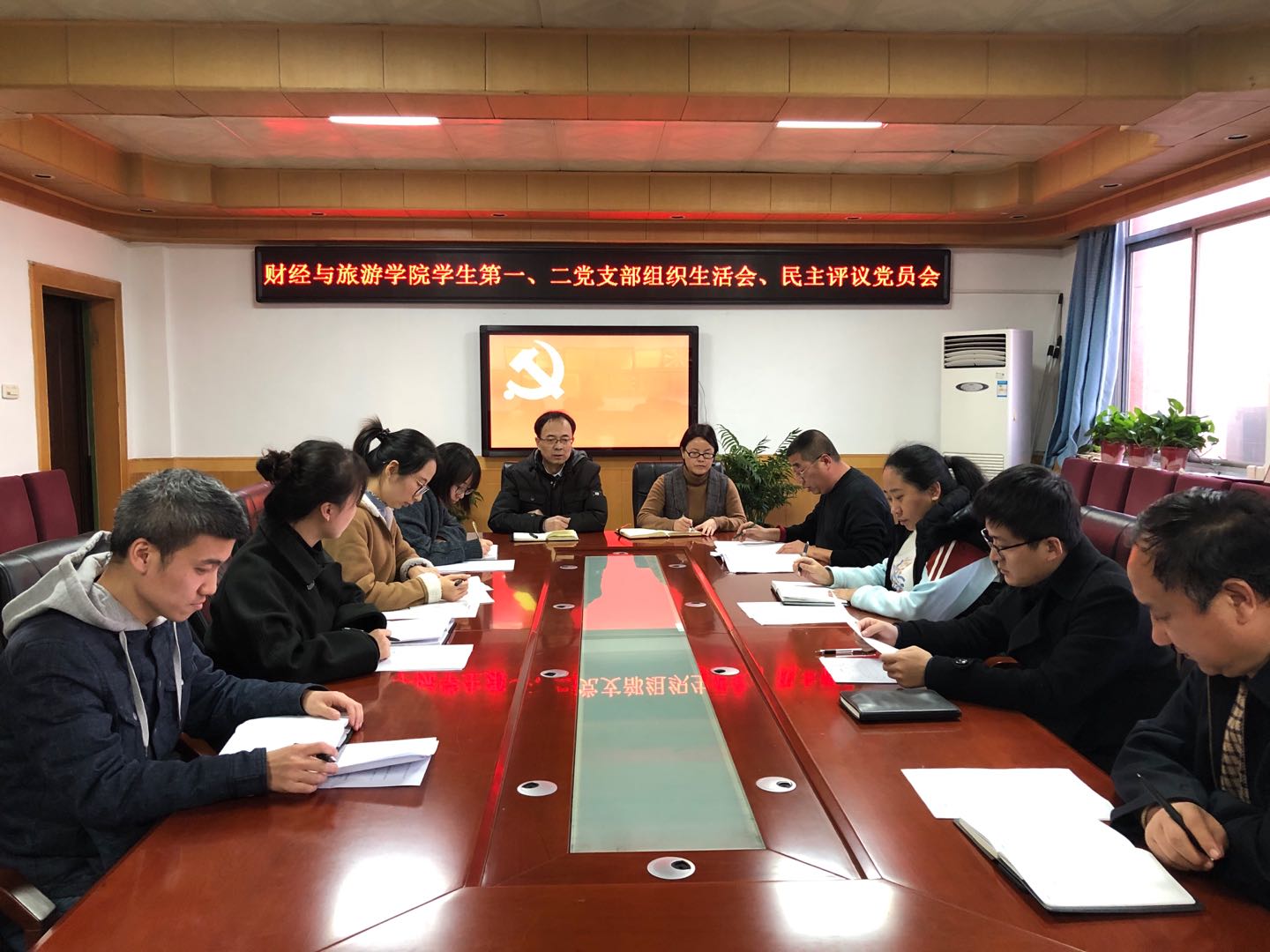 2019年12月6日下午,财经与旅游学院学生第一、二党支部在格物楼408会议室召开组织生活会暨民主评议党员会。学生第一党支部书记罗峰主持会议,学生第一、二党支部全体教师党员参加,财经与旅游学院党总支孙继龙书记,吴姗娜副书记到会督导。
