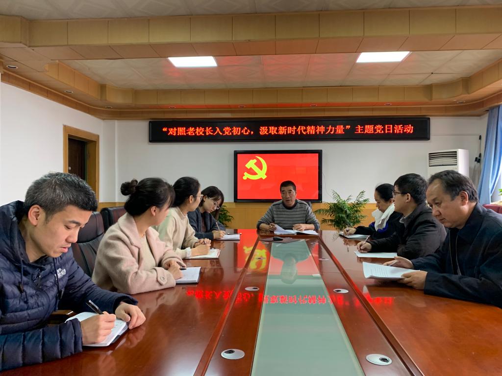 为进一步推动“不忘初心,牢记使命”主题教育往深里走、往心里走、往实里走,根据学院《关于组织开展“对照老校长入党初心,汲取新时代精神力量”主题党日活动的通知》安排,11月28日上午,财经与旅游学院学生第一、第二党支部在格物楼408开展“对照老校长入党初心,汲取新时代精神力量”主题党日活动,支部全体教师党员参加了此次活动,活动由学生第一党支部书记罗峰主持。