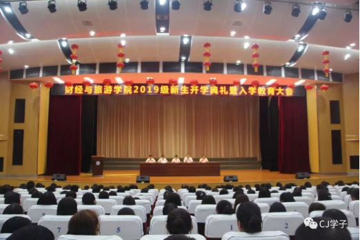 8月30日上午九时,财经与旅游学院在明德堂大礼堂举行2019级新生开学典礼暨入学教育大会,财经与旅游学院党总支书记孙继龙、院长吴姗娜、副院长赵利娟、学工办主任杜娟、实训中心主任张联朋、2019级辅导员、班主任及780余名新生参加了会议,会议由党总支书记孙继龙主持。