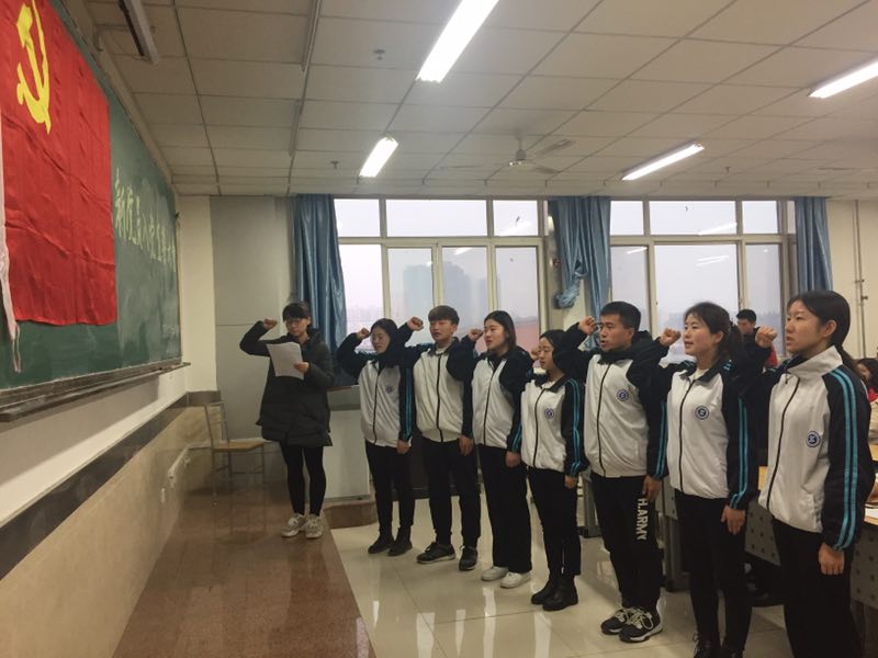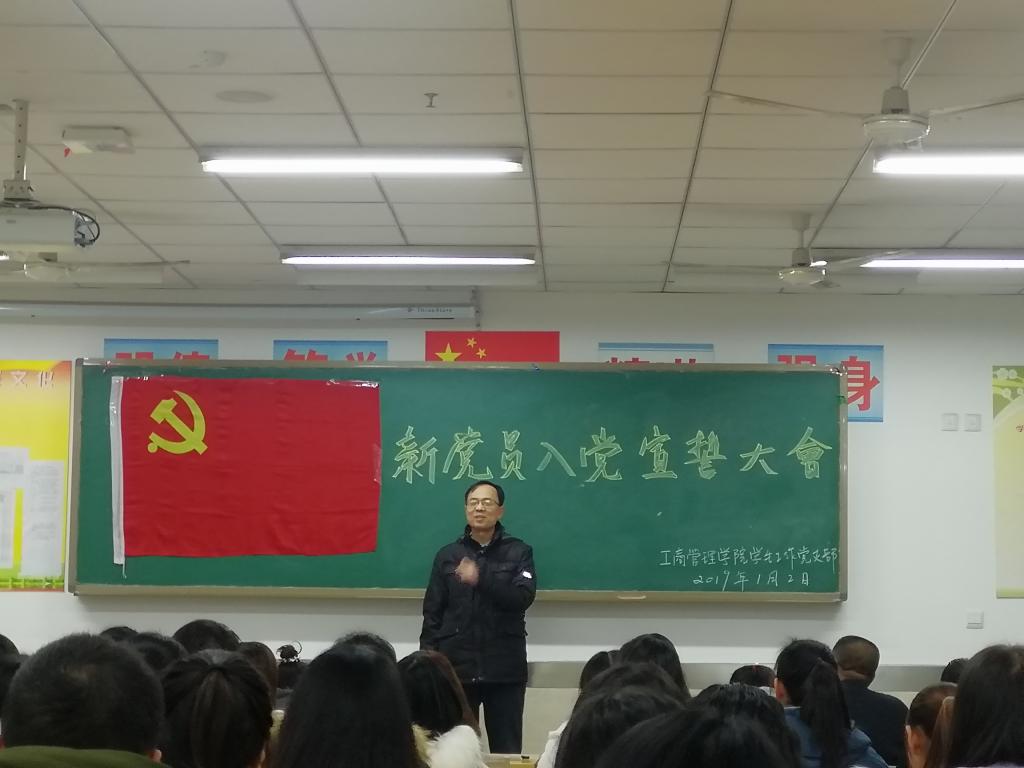 1月2日下午,工商管理学院党总支学生工作党支部,在学院崇明楼806教室举行“立誓言,再奋进,做表率”新党员宣誓仪式。学工支部全体教师党员、7名新发展预备党员、17名党校第七期发展对象、第49期入党积极分子等80余人参加,工商学院党总支书记孙继龙出席大会,宣誓仪式由学工支部书记杜娟主持。
