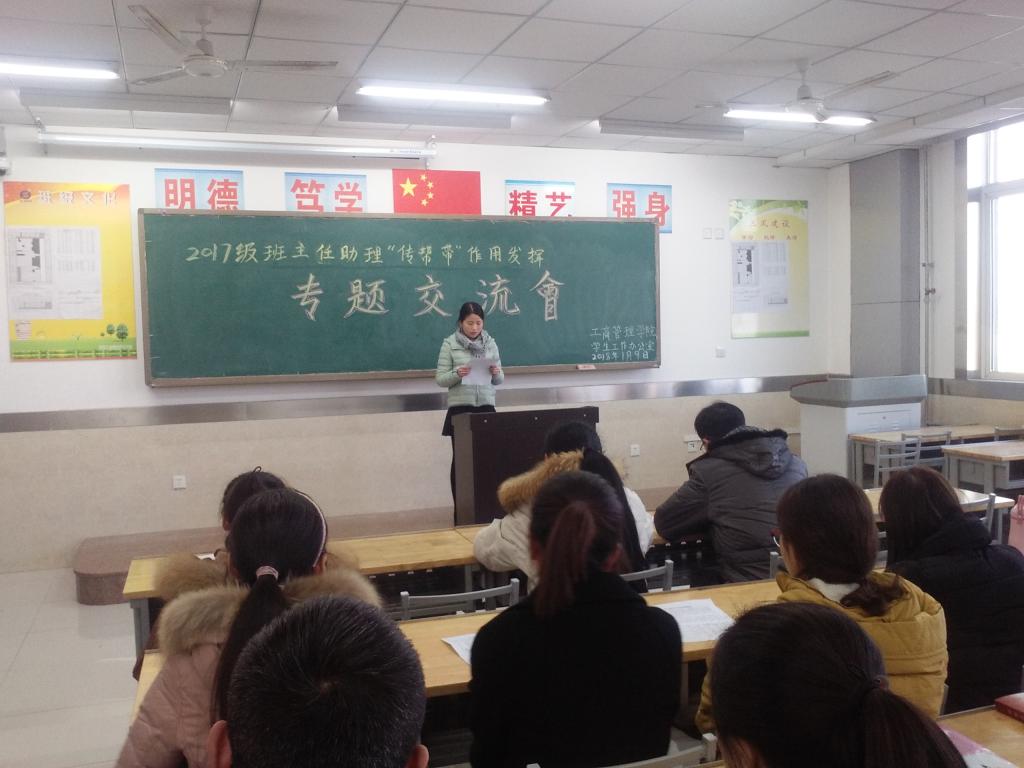 1月9日下午4时许,工商管理学院学生工作党支部在崇明楼806教室,召开了2017级班主任助理“传帮带”作用发挥专题交流会。参加此次交流会有:工商管理学院党总支书记孙继龙老师,工商管理学院学生工作党支部书记杜娟老师,学生工作党支部宣传委员狄莹莹老师以及2017级班主任助理,2017年级各班班长、学习委员,第48期入党积极分子共计70余人,交流会由罗峰老师主持。