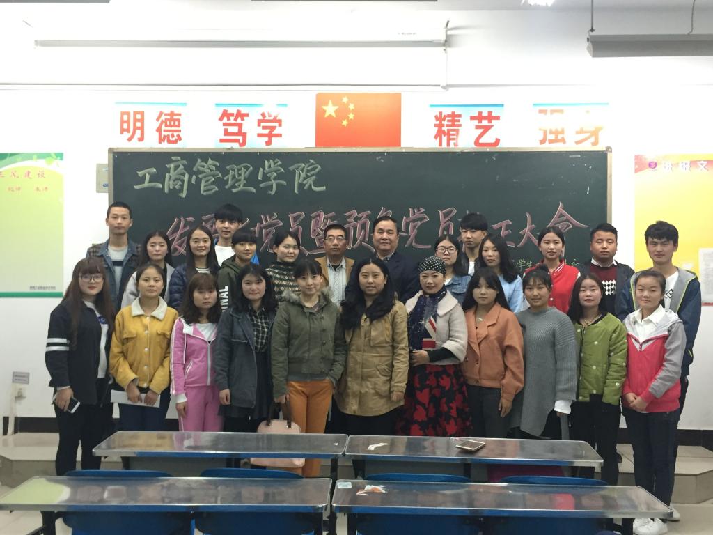 10月30日下午,工商管理学院学工党支部在崇文东楼102教室召开了2016年第六批新党员发展暨第三批预备党员转正大会。大会由党支部书记杜娟老师主持,学工党支部全体正式党员、预备党员、发展对象、介绍人等90余人参加了会议。