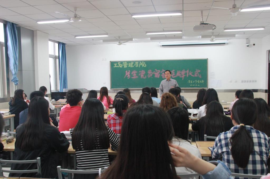 6月2日下午,工商管理学院在崇明楼605教室举行学生“党员宿舍”挂牌仪式。工商管理学院学生工作党支部书记杜娟、辅导员侯建朝、罗峰以及党员代表58人参加了授牌仪式。