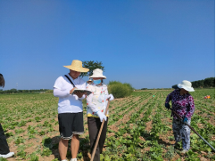 顶着30度的高温,团队成员又来到了大白菜的生产基地,当地村民手把手的教我们锄头怎么使用、杂草和蔬菜苗怎么分辨、以及田间管理和病虫害防治等科普知识,大家也积极参与到锄草、翻地等劳动中来。同学们的肤色嗮黑了,但他们也深深感悟到:只有拿起锄头,步入田间,才能真正理解父母的辛苦和不易。