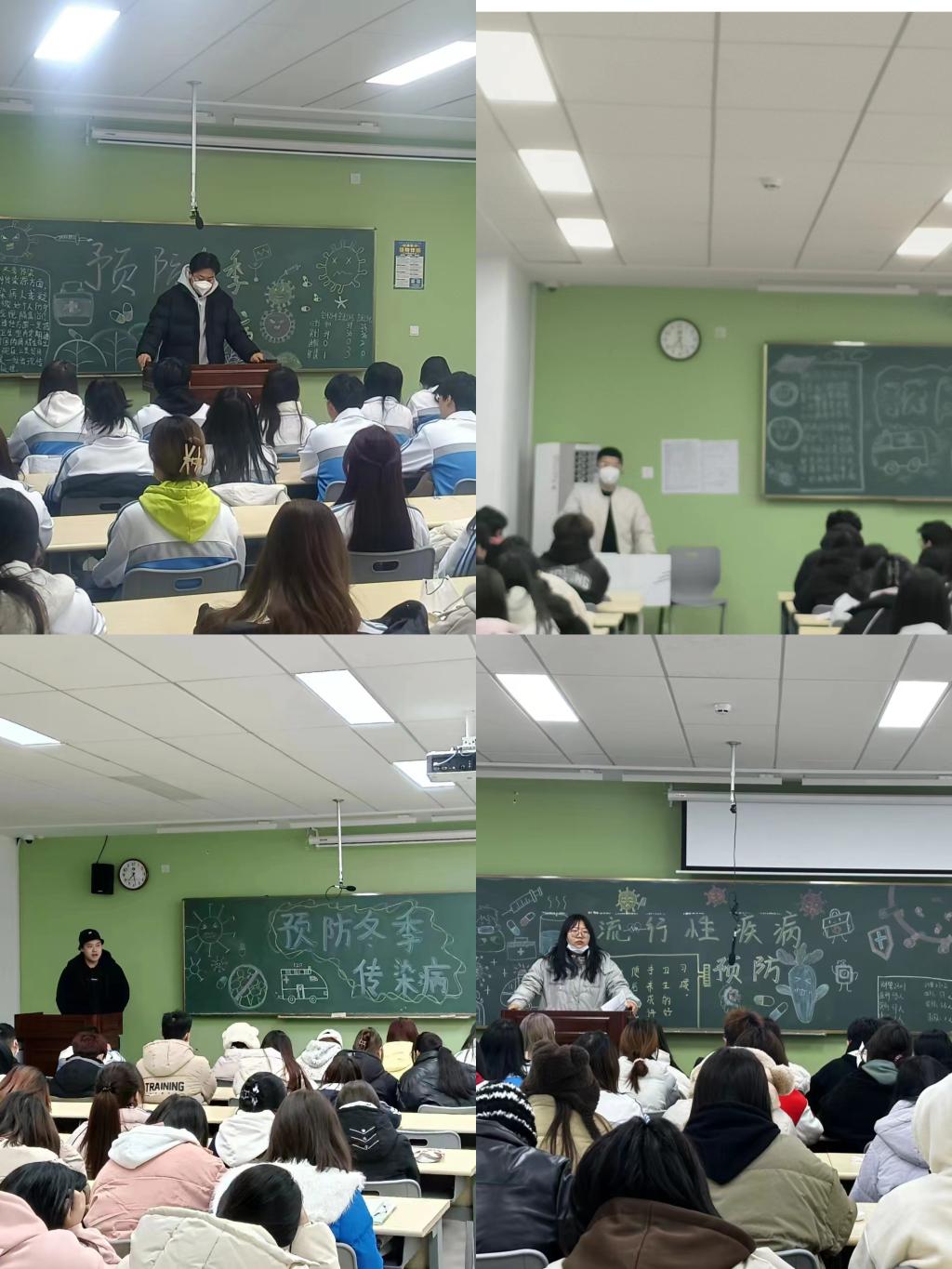 冬季极端恶劣天气频发,同时也是传染性以及流行性疾病的高发季节,为了提高学生的安全意识以及增强同学们的疾病预防意识,促使广大学生了解传染病预防知识,切实保障学生的身体健康,财经与旅游学院于12月17日在各班晚自习开展了“冬季常见流行性疾病预防知识暨安全教育”主题班会,班会由各班主任主持。